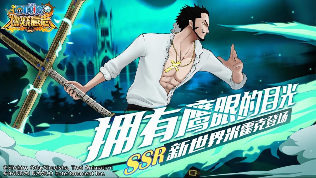一速SSR鹰眼的终结技“黑刀·无”,“全体封技、以一敌五”的盛况至今都令人非常印象深刻!此后登场的新角色也都有非常亮眼的表现,雷利、马尔高、白胡子、新世界佐罗等角色的参战,都成为了各个阶段角色强度的“里程碑”