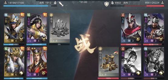 开荒足够多的高级地块后,我们再一次性升级大殿和御将旗。上阵我们的最强组合,再来参与各项战斗。(由于一个阵容最高20御,所以我们最好是组一个20御左右的国家队最好。)