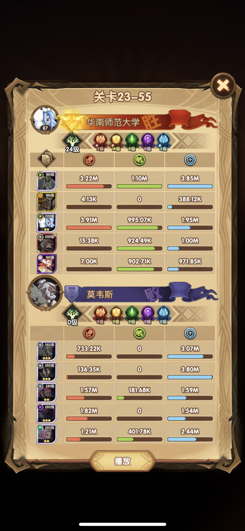 12. 这里解释一下为什么骨王会越来越出色,因为后面有些关会用到骨王一刀流,一穿5的存在,前提骨王要有专属。下面最后一张图,用骨王一刀流,直接穿了23-60平均等级不到200,而别的玩家打这关,等级要240左右!