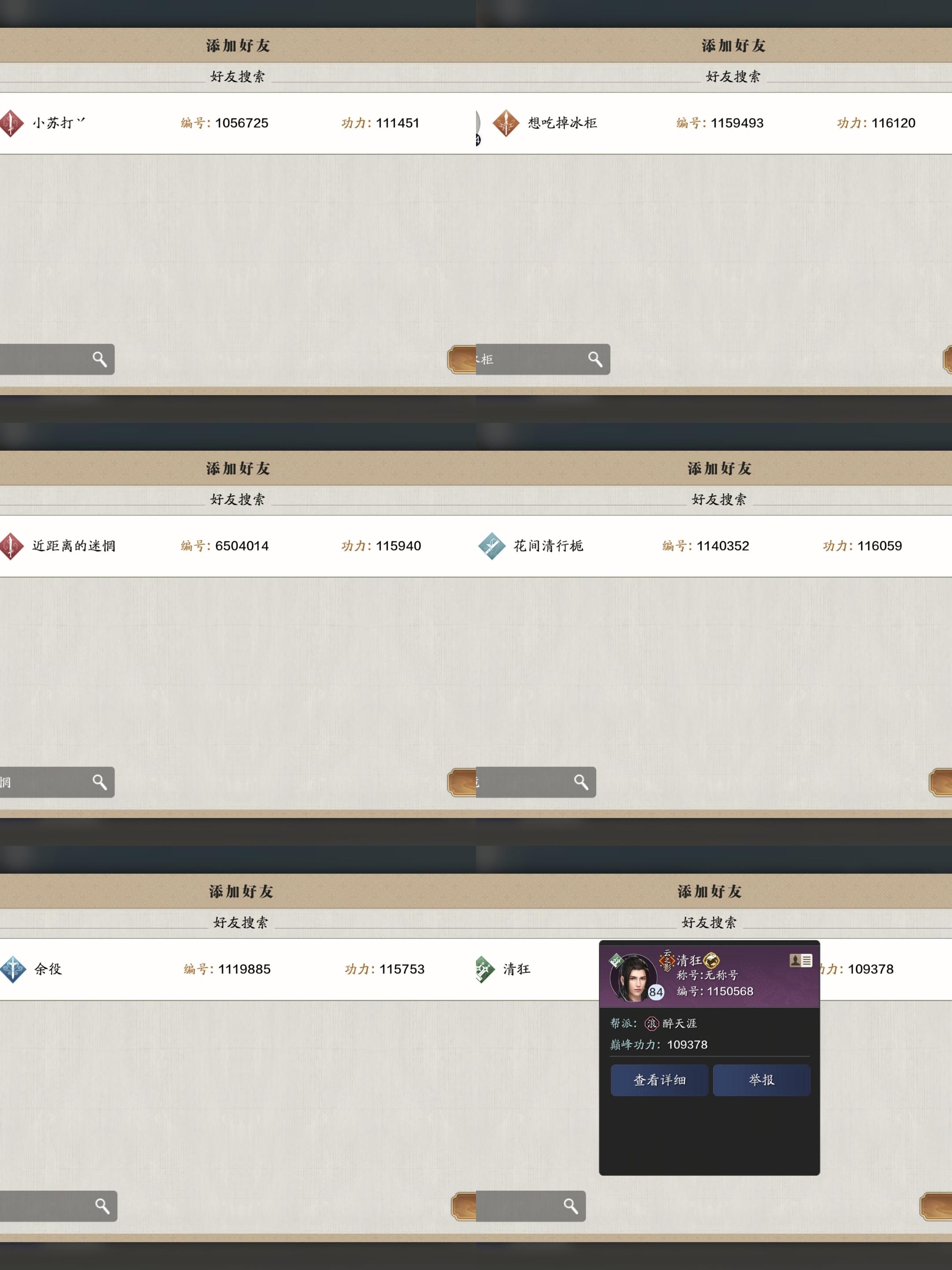 随便放几张刚打的论剑匹配到的对手,就这匹配机制诚心让我们给氪金党当沙包来提高人游戏体验呗!还搞什么论剑竞技的招牌,可笑至极