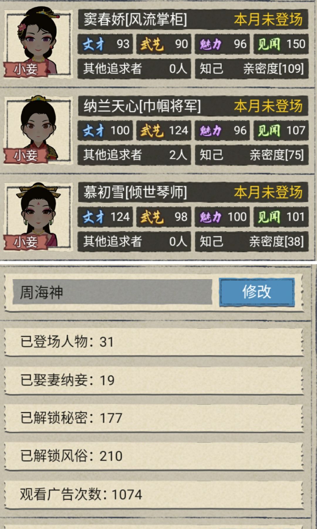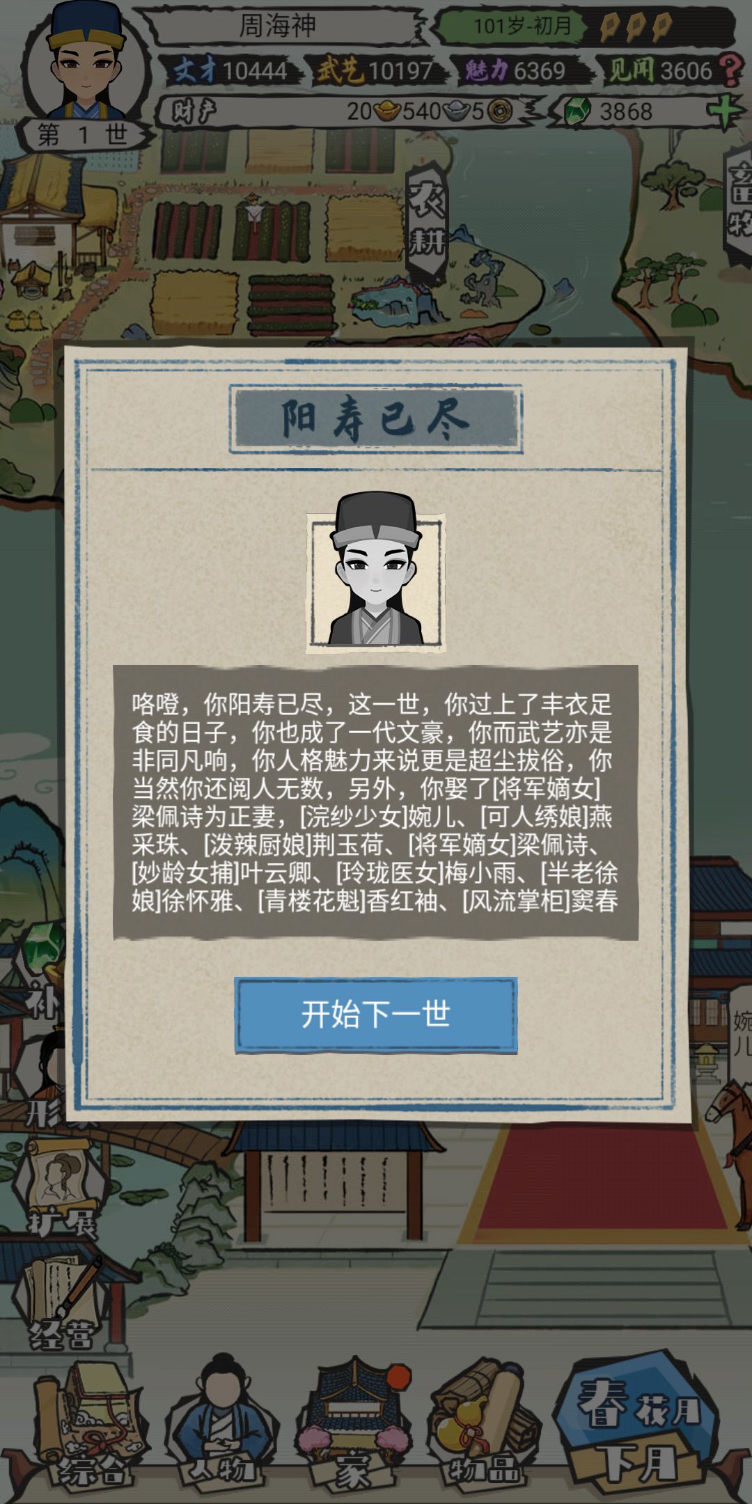 这一世活到120岁,攻略了19位佳人,后代有360个男185女175