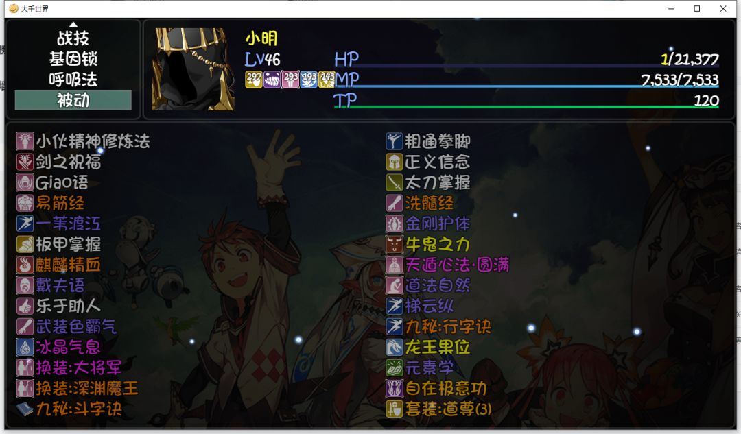 接上个帖子,今天把被动补全了下,一个牛鬼之力一个自在极意功还有一个大将军的换装;
