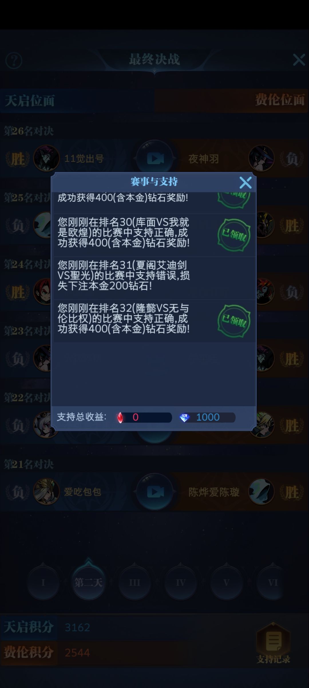 我昨天答了题,今天积分清零,我压的最终决战也和没压一样,我只要600血精,我的损失就算了