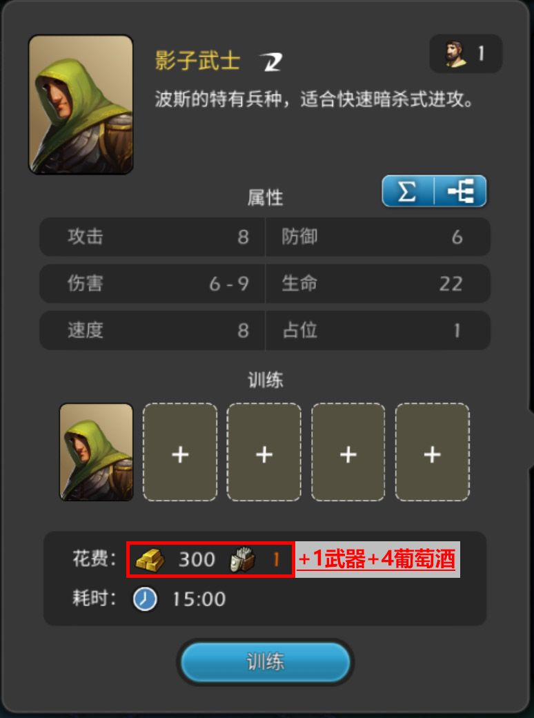 *本项调整预计于下周生效,您本周更新后上述三个兵种的训练花费依旧为原花费,只是显示上为新版花费。下周起将全面采用新版花费。