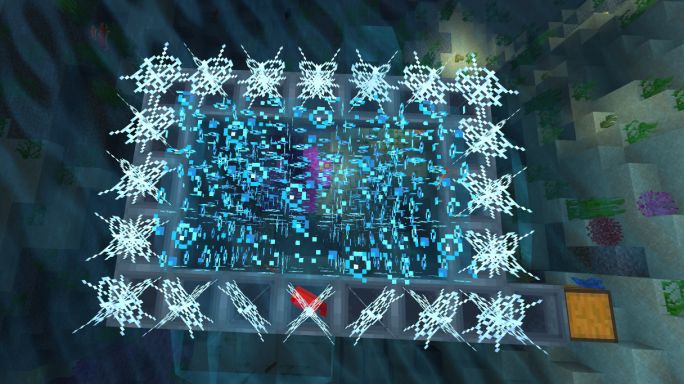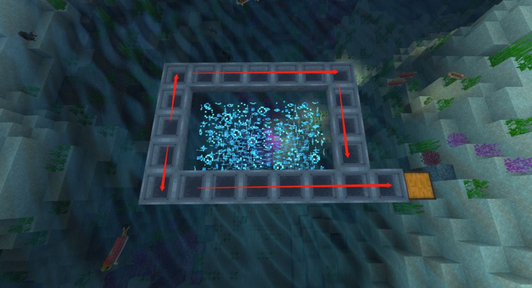 首先在较浅的海底铺上宽3格长4格的灵魂沙,此处的大小冒险家们可以视需要调整~