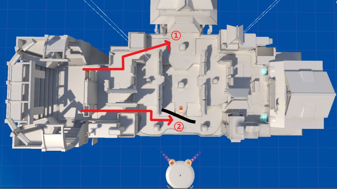 (1) 高台路线(图中①号路线)非常适合中远程英雄