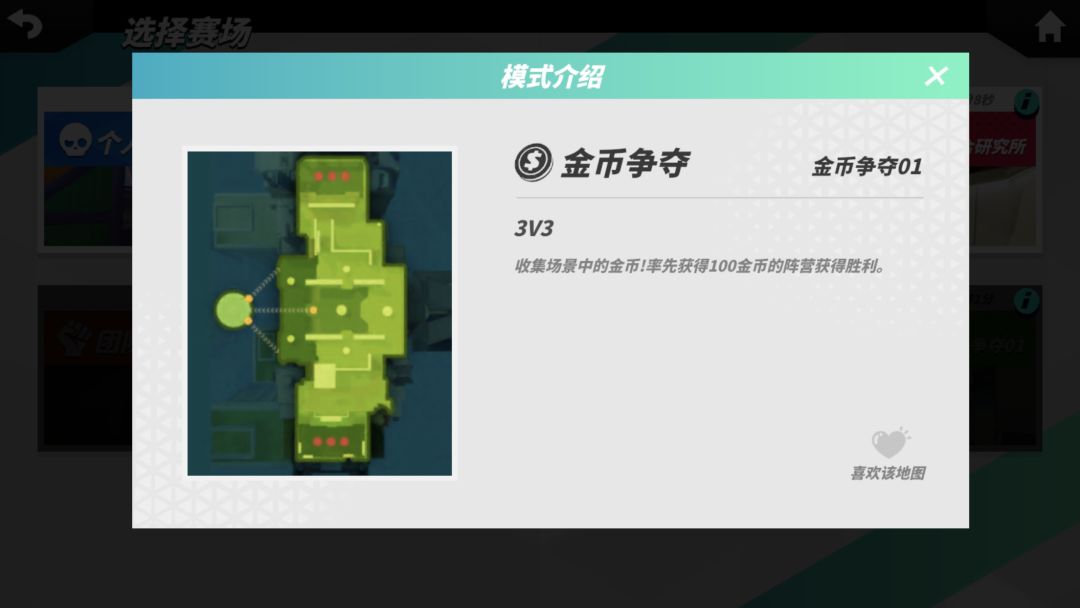 6人一局,3V3分为两个阵营,在规定的5分钟内进行金币争夺和自由对战。比赛期间,选手被击败后,其持有金币数量的50%(向下取整)会掉落在原地,并在固定出生点复活。