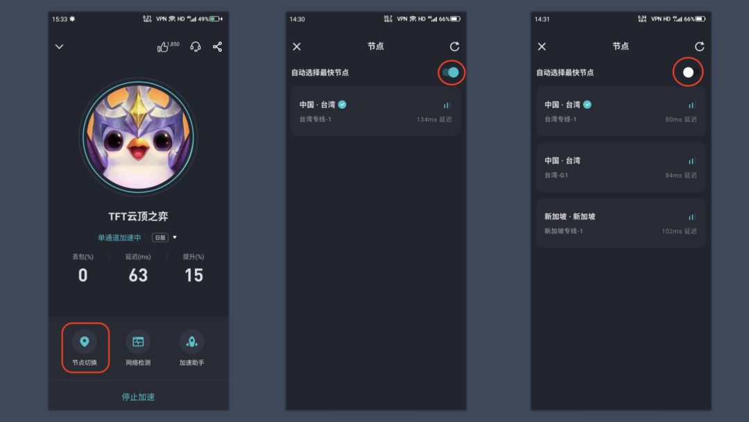 并且可以自动选择最快的节点啦,当然,你也可以关闭开关,自主选择~