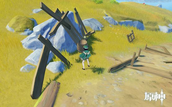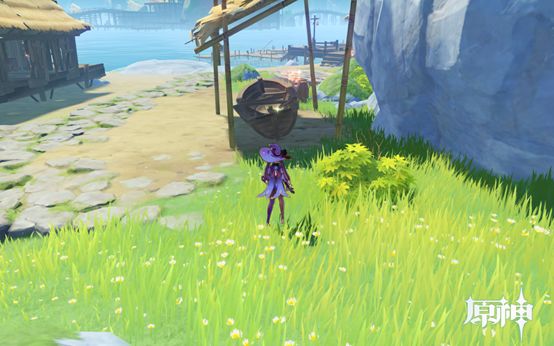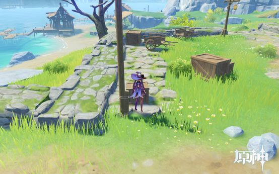 6. 传送点正前方的车,第一个点。往地图右下方向走,水井是摩拉点。正前方的箱子是第二个点。继续往前走有个破渔船,第三个点。然后往右后方走,进地窖,有5个点。