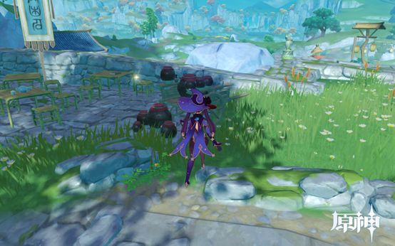 11. 传送点往右沿着路走,到达散落着东西的地方,这里有3个圣遗物点,1个摩拉点,1个食物点。