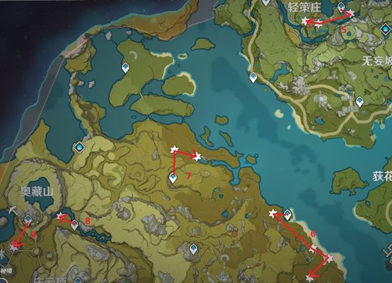 每天只要花十分钟就能获得相当于40体力的圣遗物经验外加6000摩拉还是很赚的。以下路线剔除了距离较远、只有单个拾取的点,保证效率与收益的平衡。第一次建议先把标记做好再跑,也可以跟着视频跑一趟熟悉路线。