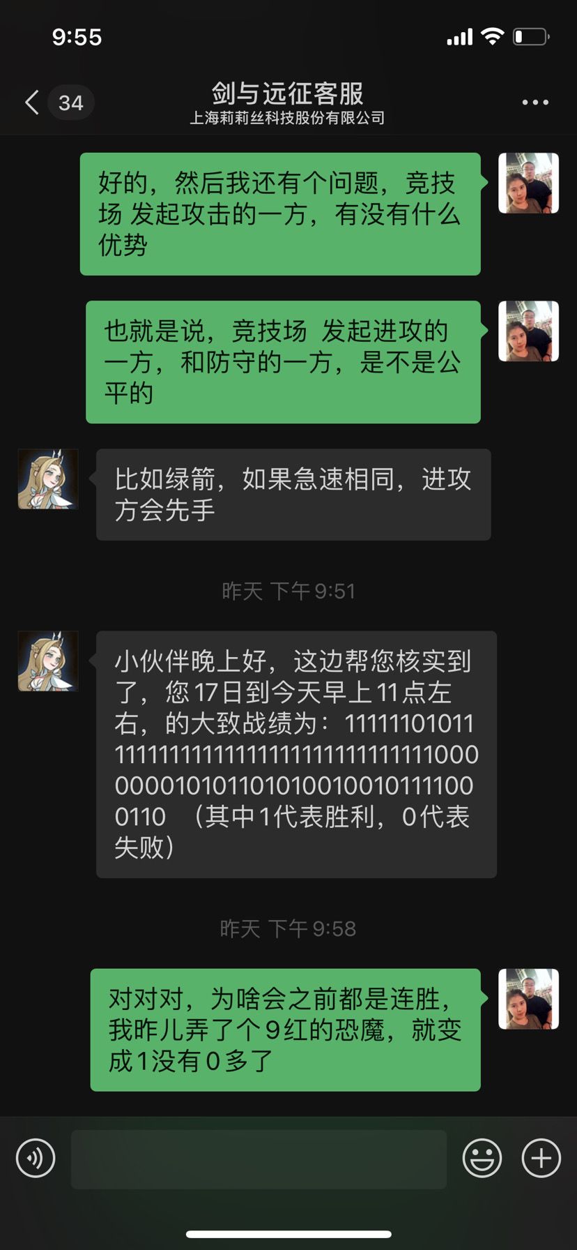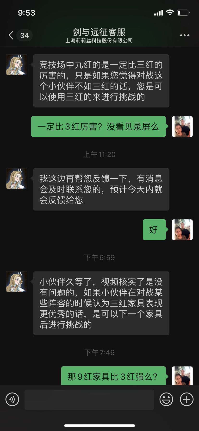 好奇的可以翻看一下上一个帖子,因为推图,推塔,区内第一。4种族积分,3族第一,高竟2个月没人挑战我,导致专注于竞技场,却屡招戏弄,商人搞了一个t3鞋子,双子搞了一个t3鞋子,就为了急速高,打竞技场。截图说明客服一直告知我,9红恐魔肯定比3红厉害,截图说明客服确认的进攻方会比防守方同等急速下,先开技能。视频证明9红恐55开还是偶尔,更别提防守了。3红恐魔却可以连胜!这就是所谓的9红恐魔要比3红恐魔厉害。