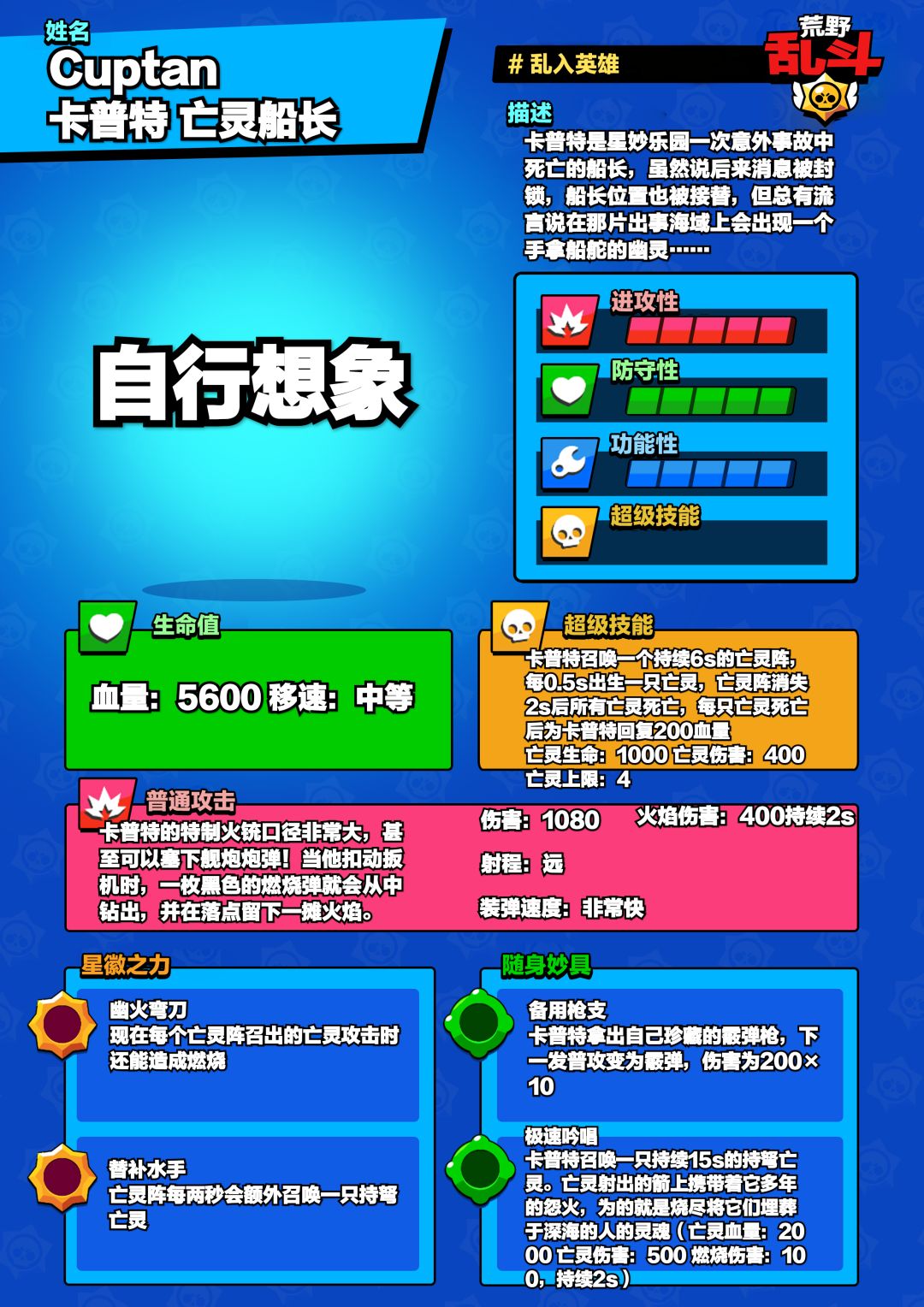 描述:卡普特通过吟唱召唤出为正义牺牲的亡灵水手,水手们会再次拿起弯刀,斩尽所有出现在眼前的敌人!