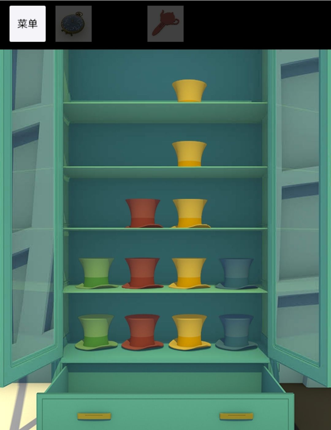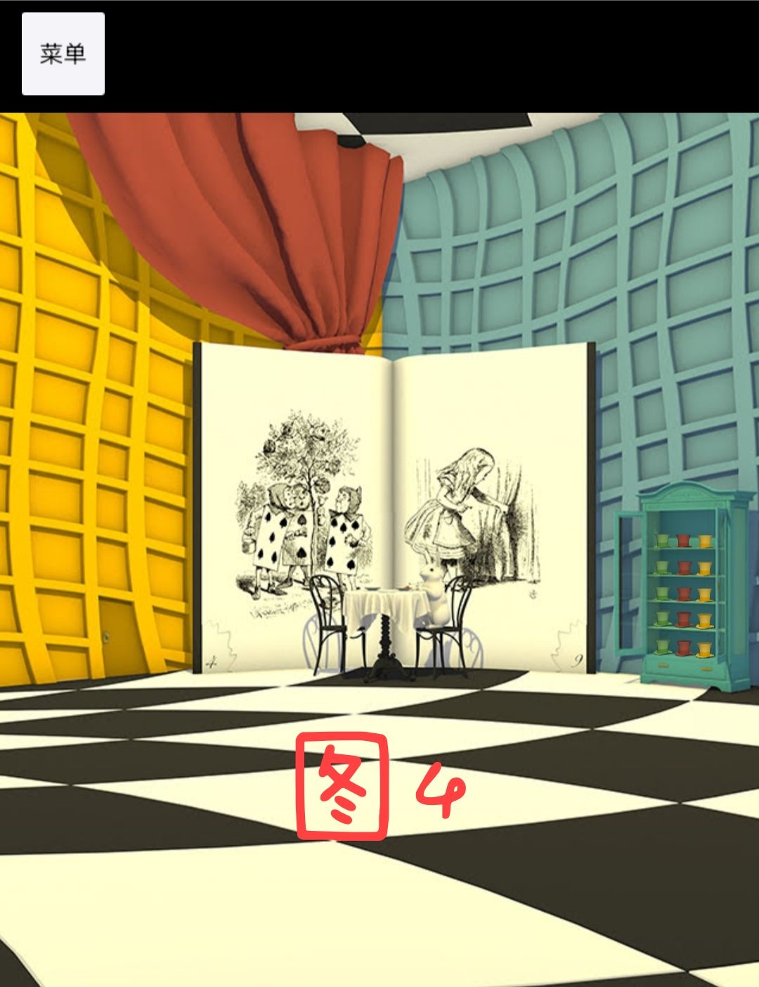 到茶话会后把牌子插入茶壶,老鼠就会跳到一个杯子里,点击杯子后就会拿看到一把钥匙。