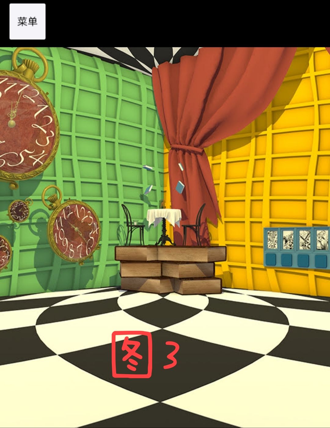 这里就会集齐三张茶壶牌子,图二大兔子喝完缩小药水之后墙上会有一个小洞