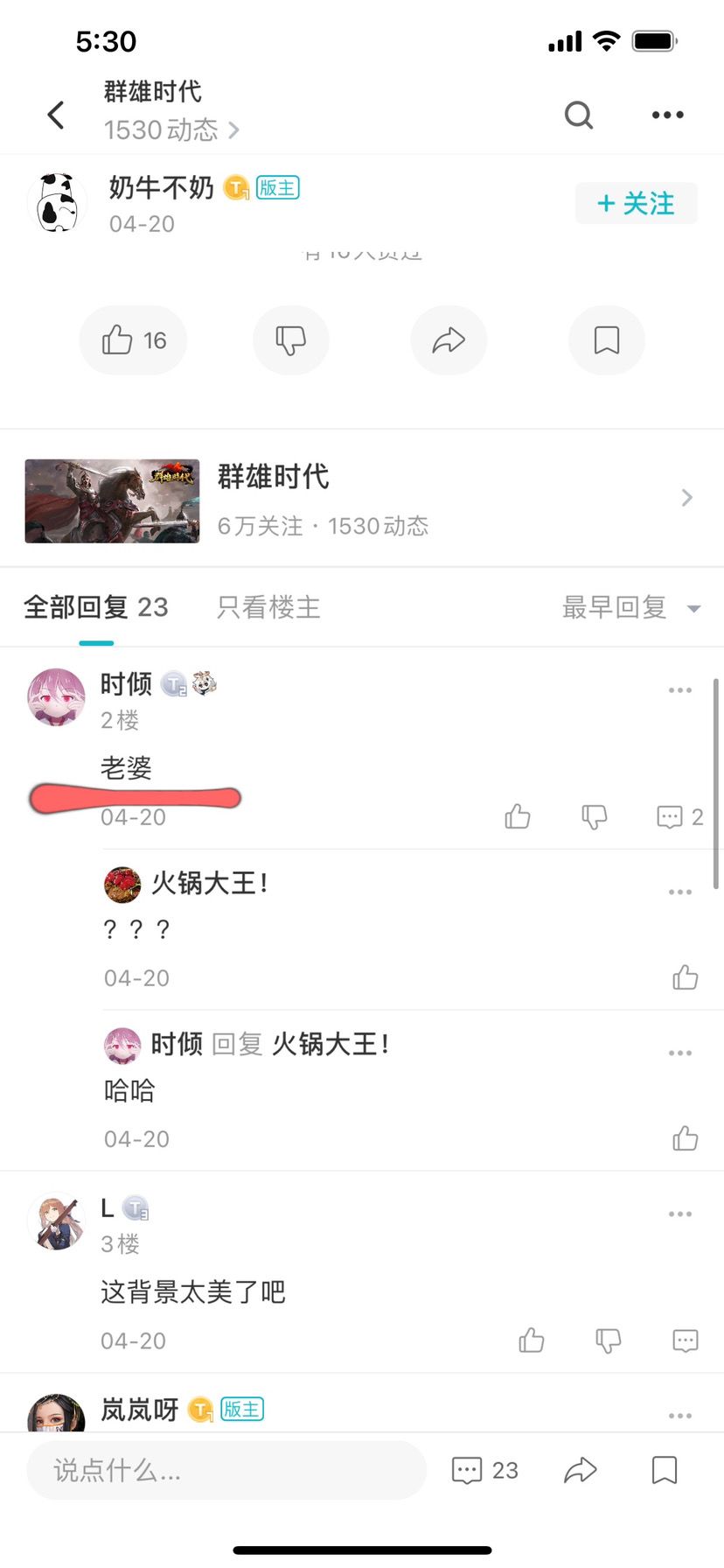 最近奶牛一发帖,就有人叫他老婆: