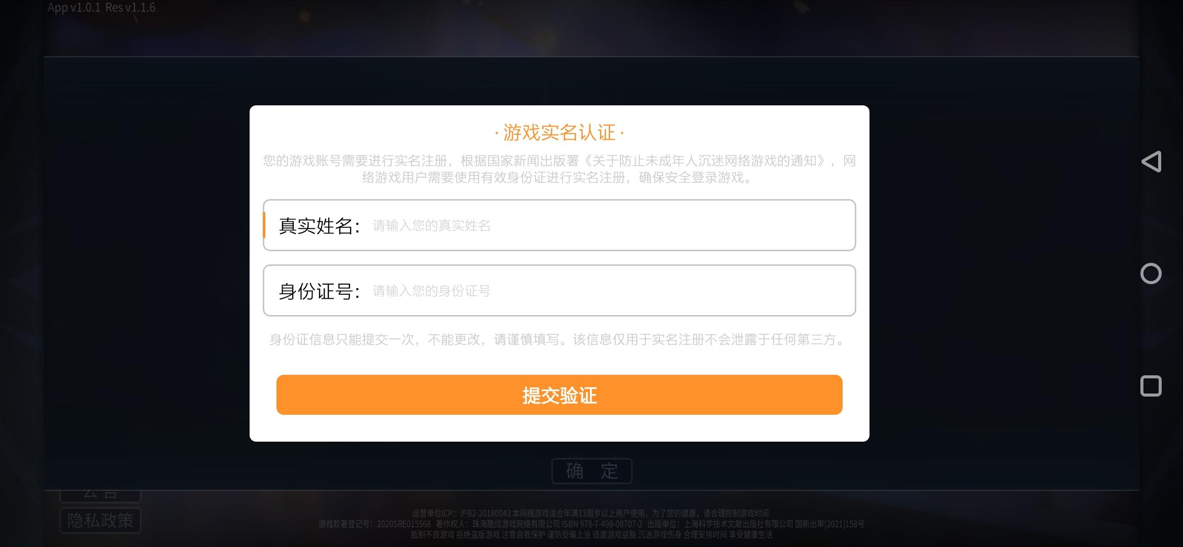 我发现个bug不知道大家有没有遇到在第一次登入的时候提交身份证实名验证输入了一次提交成功后进入游戏的时候又弹出需要实名认证的框
