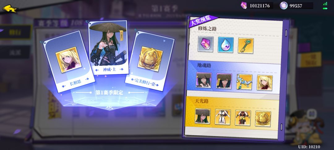 买战令还是挺划算的,主要有一张金卡神威和四级攻击玉。这边还能看“大部分”装备和残影的效果。