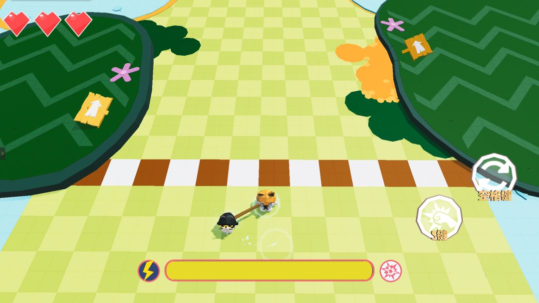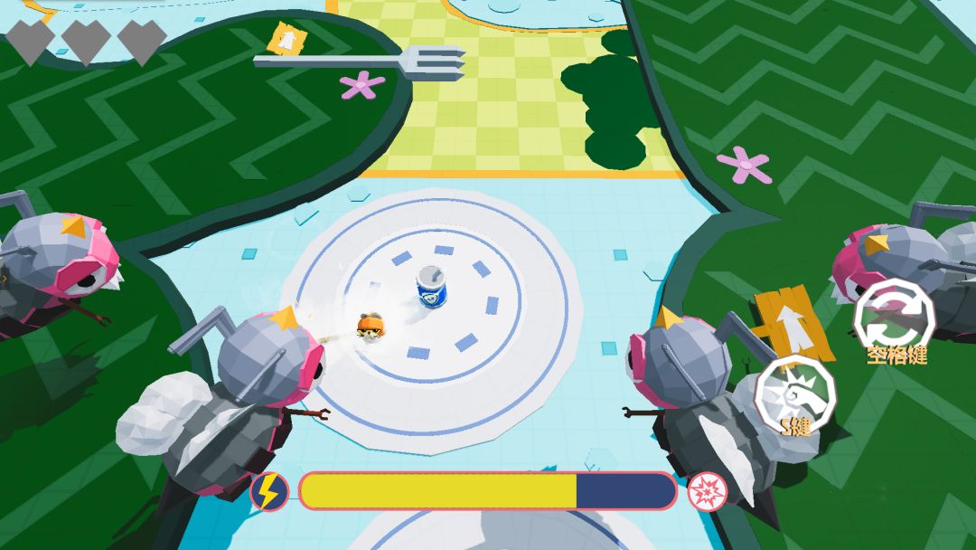 游戏过程中,大家除了需要利用空格键进行移动之外,还需要小心地图上的机关,在机关攻击或是蜜蜂靠近一定范围时,可以用S键进行抵挡,从而挡开袭来的攻击。
