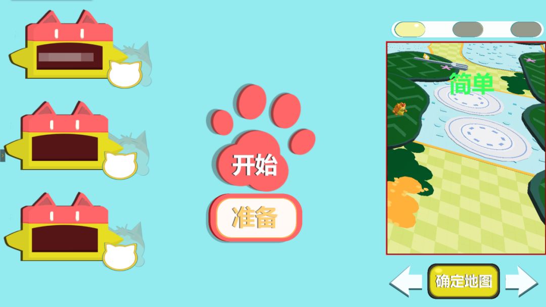 进入游戏之后可以选择手机端或电脑端,玩家可以根据自己的喜好调试喵球和汪球的颜色。游戏开始之前先在右下方确认地图难度,然后点击准备之后才能开始游戏。