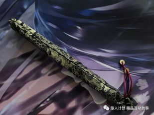 这就是我们男主的武器,拿着它就能保护我们的曹老板了~这把扇子因为都是由很厚实的木材制作,所以拿在手里很有质感,并不是轻飘飘的。而最下面的玉佩是一朵盛开的莲花。这在设计时是为了代表我们男主郭嘉,郭嘉在三国乱世中独树一帜,淡泊得像莲花,他在死前也只是一个小小的军师祭酒而已。可是他却让曹操几乎未尝败绩。