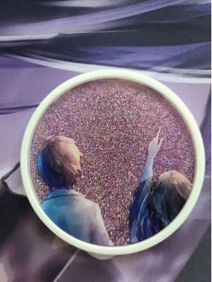 这里面的星星都是可以随着重力流动的。一款有趣好看的杯垫。