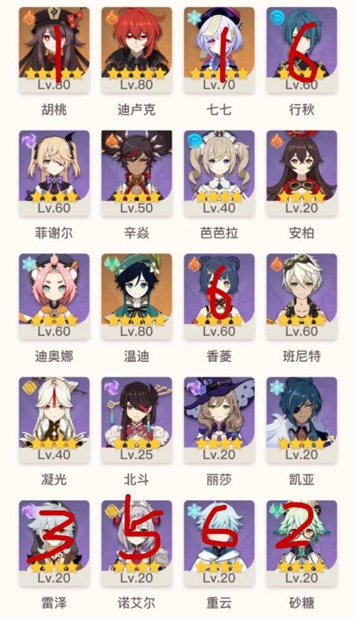 首先选出主站场角色,胡桃、香菱。然后确定队伍,由于Box缺乏角色,可以看出胡桃必须绑定行秋,那么香菱就不能和行秋组国家队了,可以考虑双火双雷超载队。最终确定胡桃行秋凯亚迪奥娜,香菱北斗菲谢尔班尼特。后备插件角色温迪、重云、砂糖都可以考虑提升一下,以应对深渊环境变化。