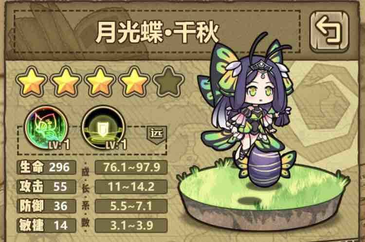 蝴蝶可以说是四星里面的神,推荐新萌先养蝴蝶,使用白姆姆优先突破到3破,蝴蝶总回血略低于树,但cd快于树,且蝴蝶技能消耗比树少一半,更适合新萌。