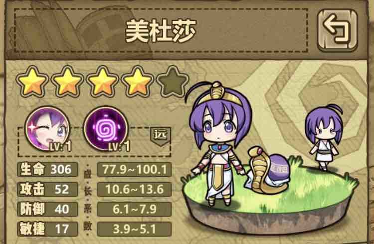 美杜莎也是一个超强的全图输出魔物,对面对面的魔物造成伤害,还能控制0.5秒。缺点是背对打不出伤害,且联动限定魔物,超级稀有。