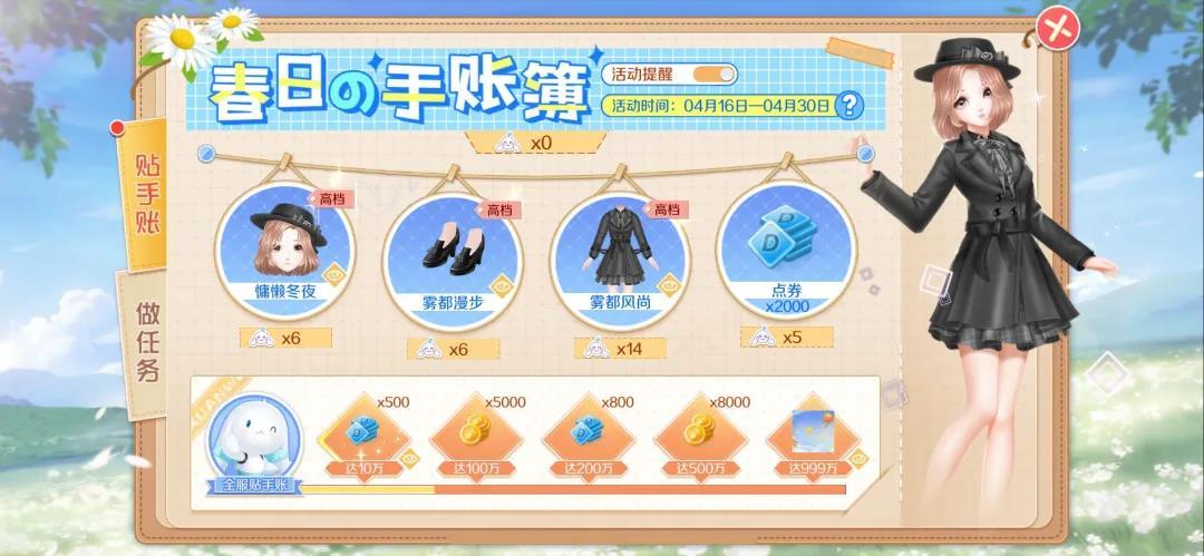 截止至4月30日,活动专属套装【雾都风尚】就在春日贴手账活动中等着舞者们带走啦!