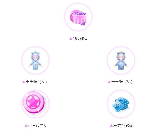 邀请6人时:奖励钻石*88&点券*3888&扭蛋币*4&独角兽宝宝装*1(永久);