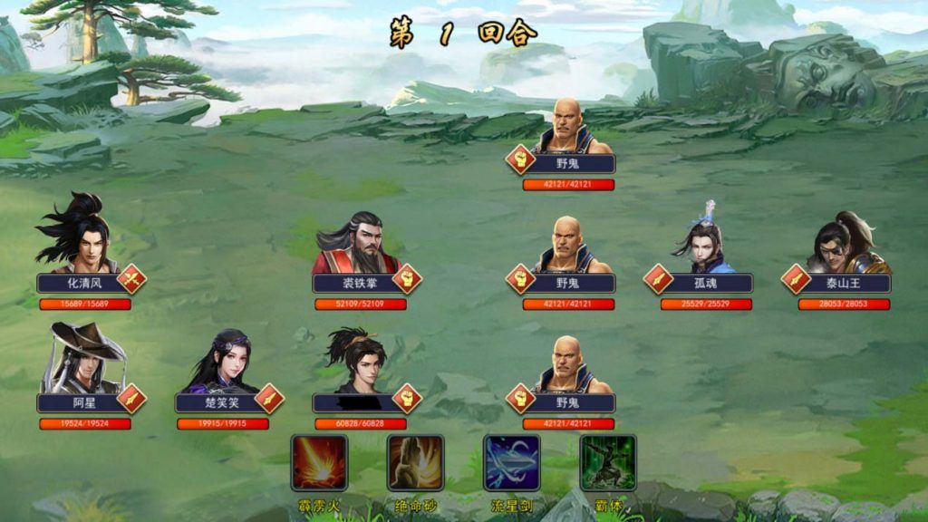 两剑两回合打三清掉后排,并尽量消耗前排拳的血量,减轻赤练拳的负担,我的主拳带赤练神掌8500防,回血2900,怪的拳只能打我1000真伤,运气不是太差1v2完全不是问题;