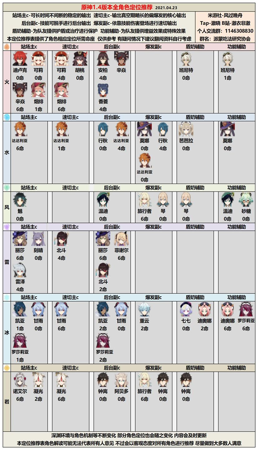 1.反应组件:由于暂时还没有一个稳定的高频后台火角色,所以目前冰系的融化反应主要体现于爆发,并不能像火属性一样配合水属性全程蒸发,因此以冰系为主导地位的冰火融化暂时只适用于爆发角色。另外如果需要合格的输出环境,可以选择携带水属性角色进行永冻流玩法。