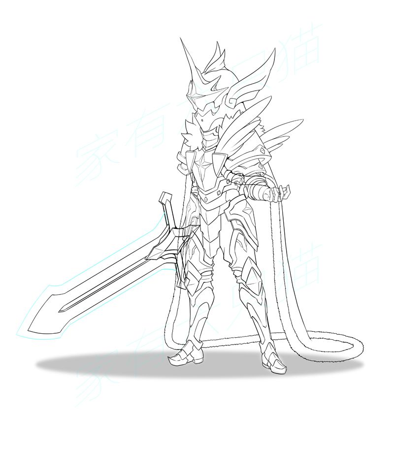 另外,左手会托着一个法器或神器什么的,还没加上去,后背也可能会增加装饰物来平衡下构图。