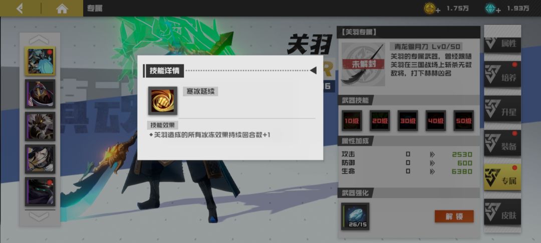 关羽属性和专属武器