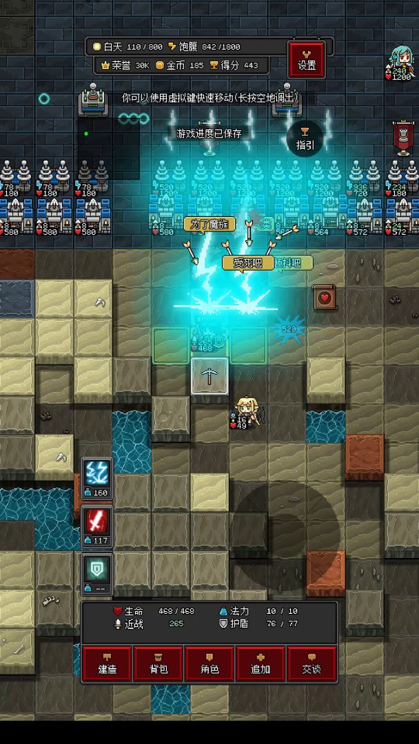 那四个村民,也就是工匠、圣女、贤者、商人,如果你材料足够的话,也可以花费材料让他们升级,提升他们的战力,至少他们没那么容易死了。(顶级村民80攻击1200点血)