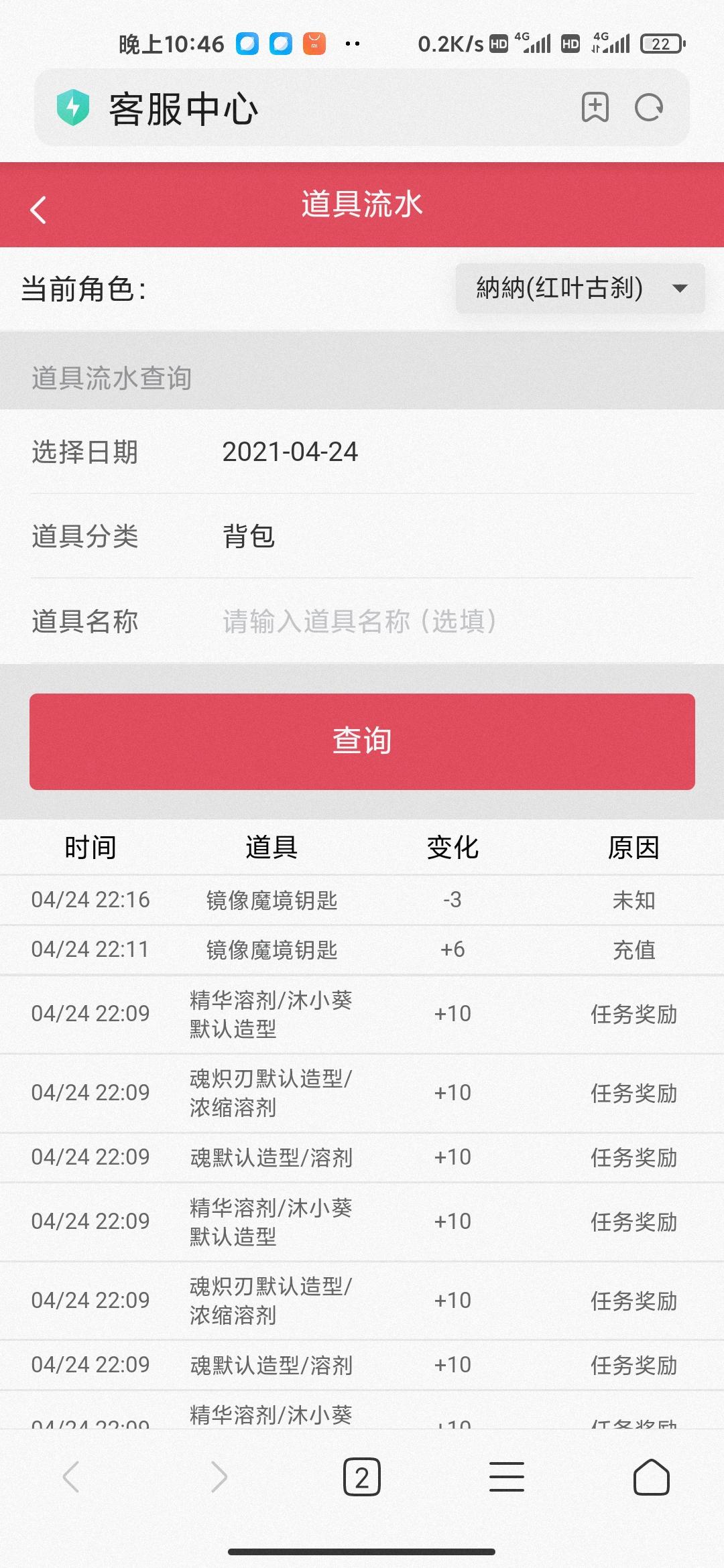 流水能查到钥匙,查不到龙币。龙币查不到也可以。但是其他的呢