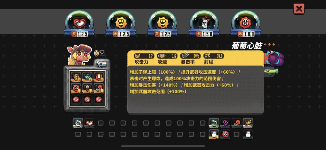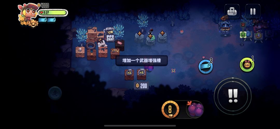首先进去先选择武器,推荐购买消耗果核的武器,除了仙人掌枪其他都很厉害。然后根据你购入的武器星级买星星提升基础攻击。