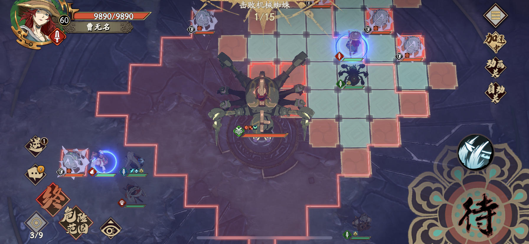 如图,主角50级,魂石极身啥的没有没关系,蜘蛛刚好能破茧即可,(主角蜘蛛攻击跟等级有关) 冰璃也是带定魂能破茧就好了,后续3回合吃个单点就行,夏侯仪妖术师铺地板,封妈再动曹无名或者慕容筝,依依能吃 不强化的单点就ok 能吃最好 所有输出全靠3个npc打,保证6回合内打死,队伍除了npc只死一个即可1.3万分,破茧如图 东西带牙甲眼即可,务必在左下刷出慕容筝跟司马樱,右上刷出曹无名,只打我打的那三个茧!!!