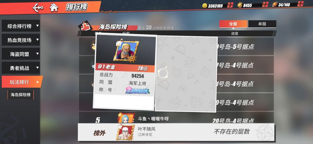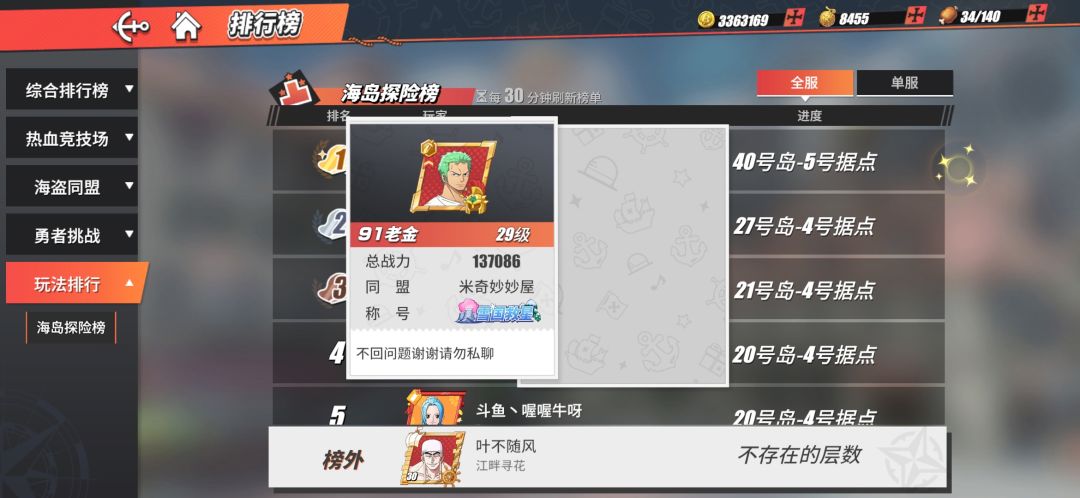 30来w战力才20号岛,13w战力有40号岛?
