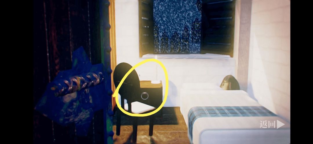 出示钥匙→并不是卡恩倒地的声音→他是倒在椅子上的,选择行李箱