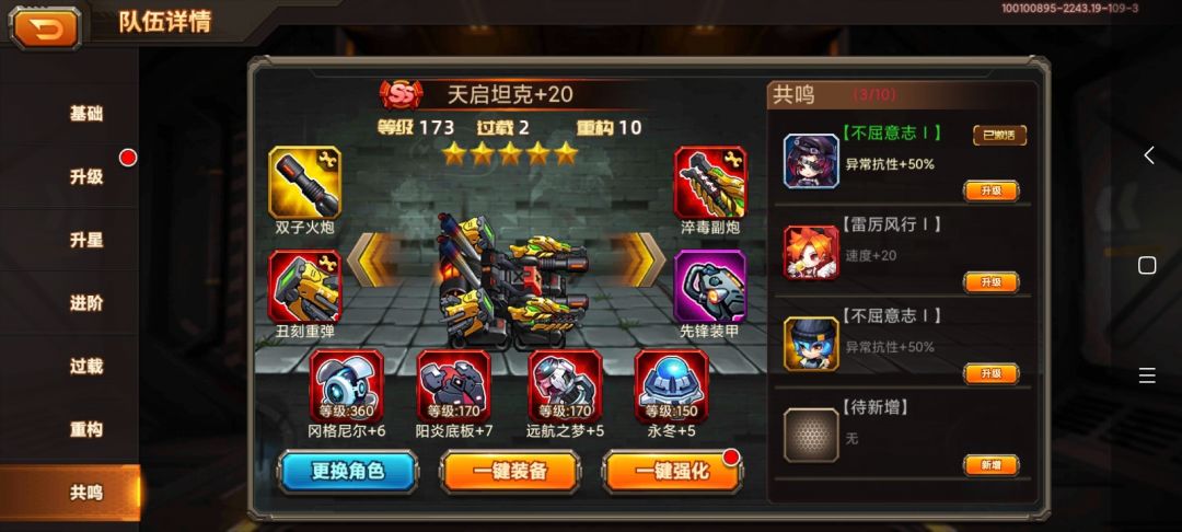 天谴已经有90+20振奋+20共鸣!已经130速度了!所以它共鸣可以放弃了!