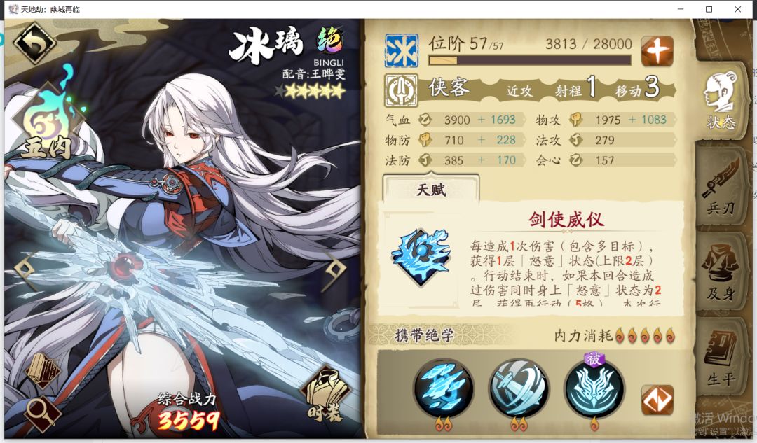 2. 4星封寒月,极武器。25 25 20 魔火。商店换天河