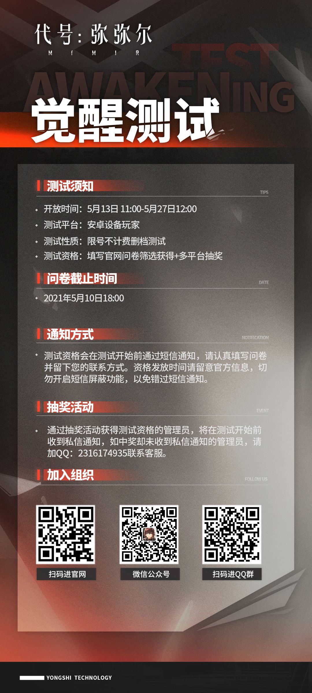 【已开奖】《代号:弥弥尔》觉醒测试5月13日正式开启,首批管理员招募中!