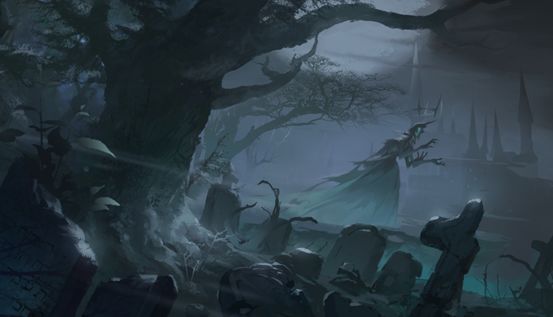 永夜林海:生于黑夜的精灵们所生活的幽寂森林。当地人可自由地游走于阴影中,亦擅长通晓和预言。绝不可大声说出那些名字,低语才是最高的尊敬。