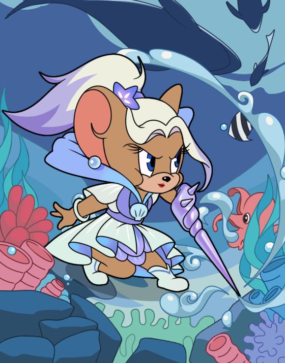高高竖起的白色秀发用海星发带固定,发尾染上了优雅又神秘的淡紫色,珍珠耳饰更是华丽夺目,真是让“看脸”的小不点直呼“女神”呢!一身绚丽的贝壳裙将莹白与蓝紫色做到了极致的融合,前短后长的裙摆设计更方便剑客莉莉在赛场上发挥自如。脚踩平底靴手戴水晶镯的剑客莉莉·水玲珑就像是被整个海洋宠爱的小公主~