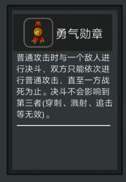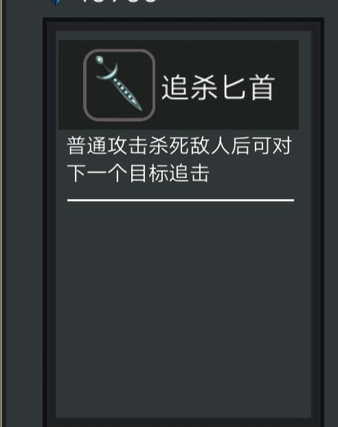 但是,如果刚刚开始,杀手攻击不够高,装备了二把黄金匕首,触发了连击,都没有击杀敌人。而是接着触发了勇气勋章,不死不休的单挑,最后胜利了,则不触发追击效果。所以后期杀手不用黄金匕首,而是使用二把吸血剑,一边吸血一边和对手单挑,通过被动提高自己的攻击,下一个敌人时候做到击杀追击的效果。