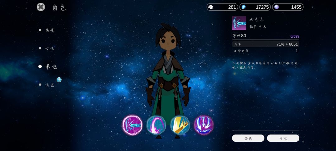 我今天把其他术法用碎片提升了品级但是还没有养,好害怕养到80级没有这套强呜呜QAQ所以大家来分享一下自己的术法吧~看看基础攻击比较高的术法有哪些