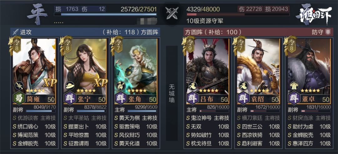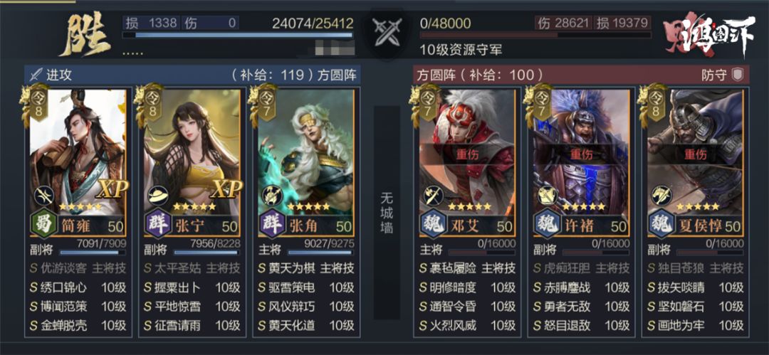 感谢静老师的分享,简雍、张宁两位S4上场的武将,是主公们攻占高级资源的全新选择,他们与张角组建而成的雷法黑科技阵容堪称“封神”哦!此前,小图已经为大家分享了S4赛季各等级资源地守军的阵容搭配,主公们的“打地”进程进行的如何?快来和大家分享你低战损打地阵容搭配吧~