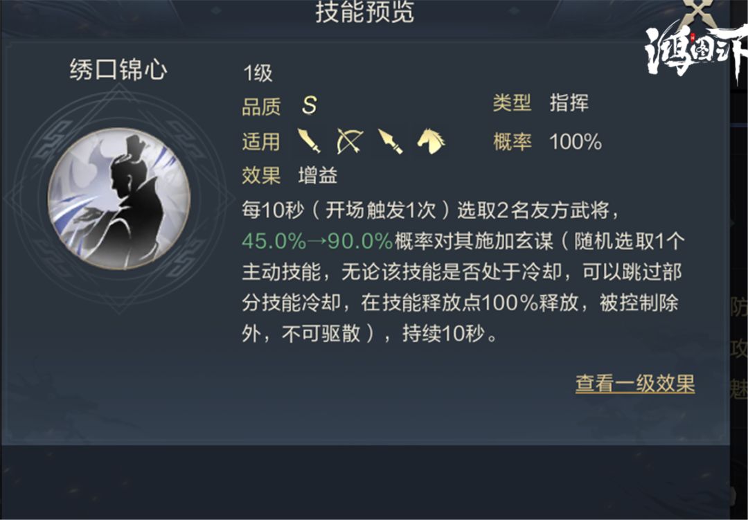 固定选取我方武将两名施加玄谋,而且无论这个技能是否冷却,都能百分百释放!